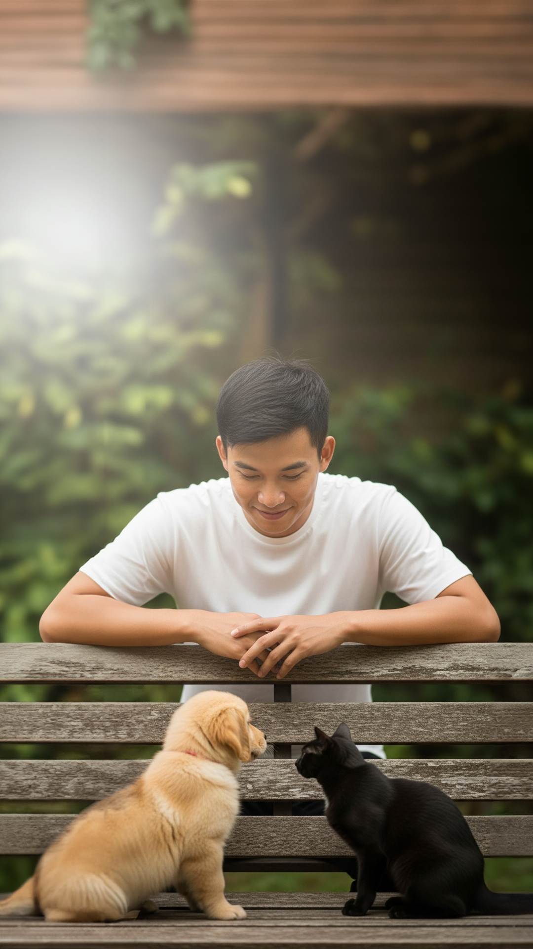 🐱 Gatos acompanham à distância, com sutileza.